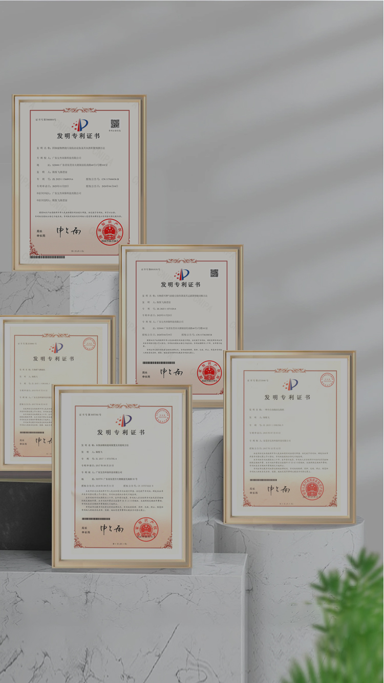 • 廣東寶杰環保科技有限公司自主研發的生物質氣化設備先后通過中國環境保護產品認證、廣東省綠色環境產品認證、高新技術產品認證并榮獲國家科技創新大獎等榮譽。擁有發明專利12項,實用新型專利及外觀專利81項。榮獲廣東省高新技術企業,廣東省專精特新企業。